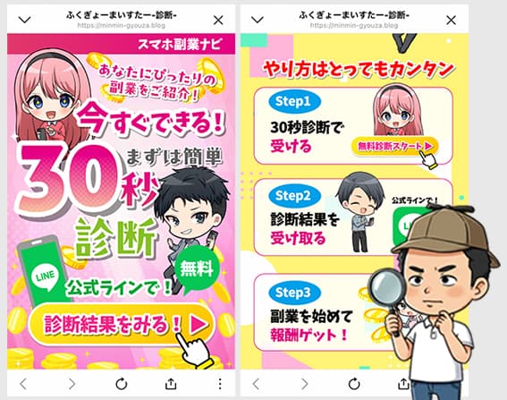 「あなたにマッチした副業」「男性向けの鉄板副業」「女性を応援する女性副業」と称して、次々と案件が送られてくるようになります。