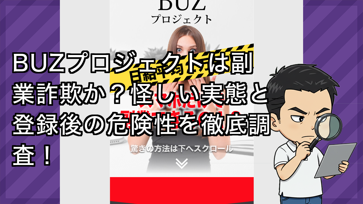 本記事では、BUZプロジェクト(バズプロジェクト)の内容や登録後の流れ、怪しい実態、評判や口コミまで詳しく調査し、