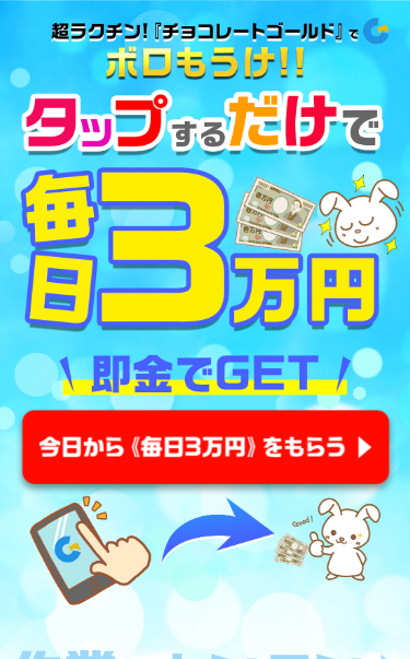 チョコレートゴールドは、スマホをタップするだけで毎日3万円が稼げるという触れ込みで、多くの人に興味を持たれていますが、実際には非常に怪しい案件です。