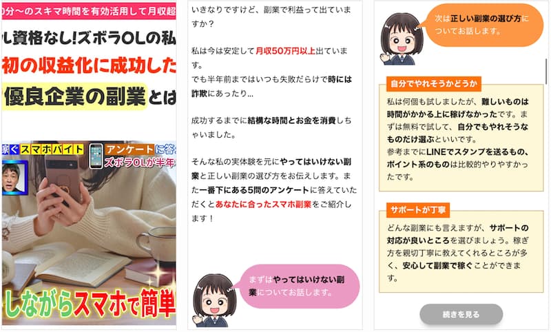 これら副業は「画像を選ぶだけで日給3万円」などの誇大広告まがいな手口が多く、正直なところ危険を感じます。