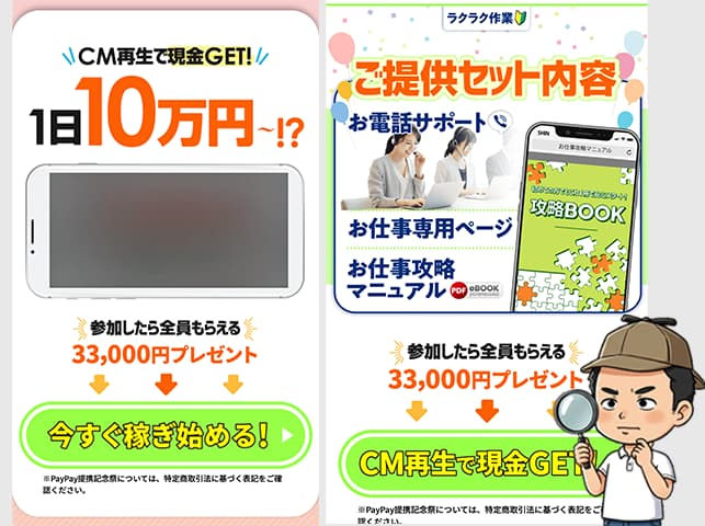 「CMを再生するだけで1日10万円稼げる」といった魅力的なことを謳っていますが、安易に信用はできません。
