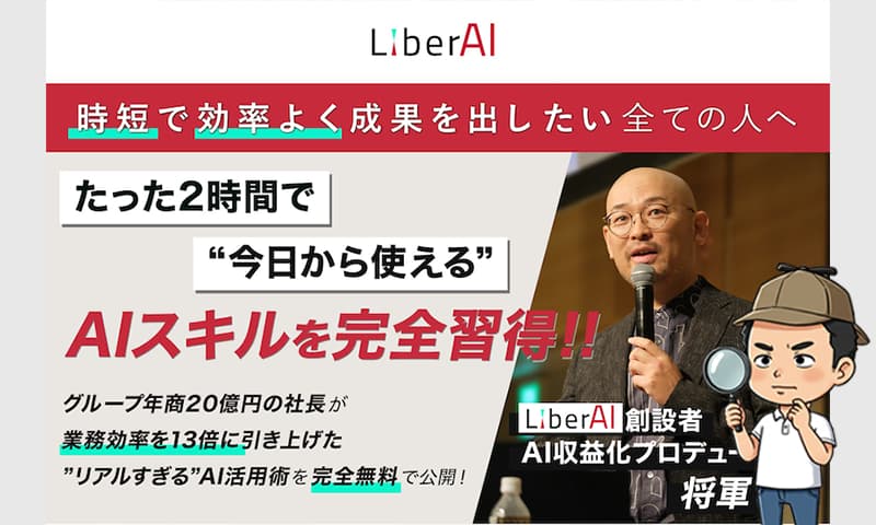 LiberAIは、「たった2時間でAIのすべてが学べる」とうたう無料のAIセミナー案件です。