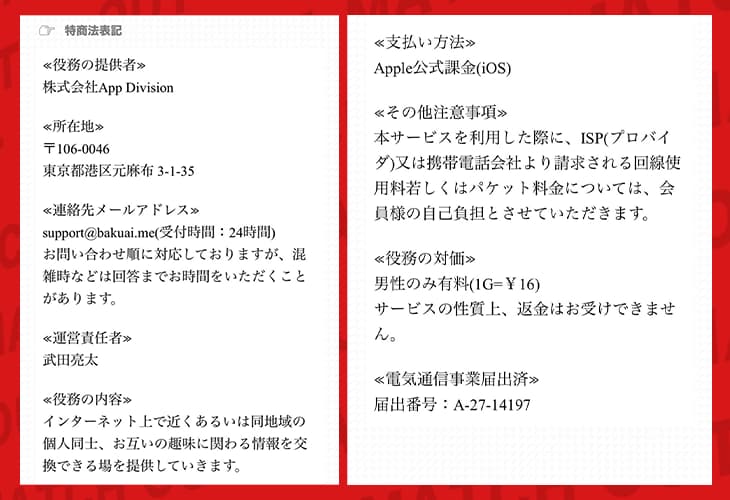 というわけで、バクアイ(爆会い)の特定商取引法・各種届け出・運営情報を実際に確認してみた。