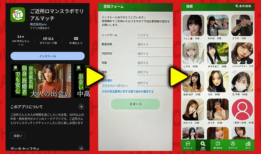 ここからは、俺が実際に「ご近所ロマンスラボ」をインストールして、登録から使ってみた流れをそのまま話していくぞ。