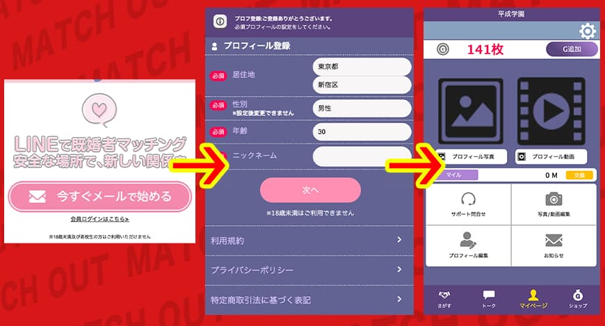 ここまでは、まあ普通の出会い系と同じ流れだなと思った。