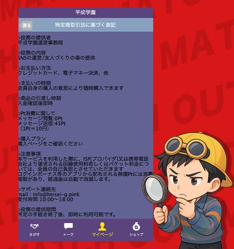 で、今回相談が多かった平成学園について、俺自身が実際に登録して、使って、メッセージも確認してみた。
