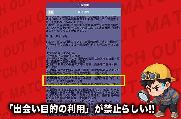 しかも、利用規約も見てみると、「出会い目的の利用は禁止」と書かれてたぞ!!