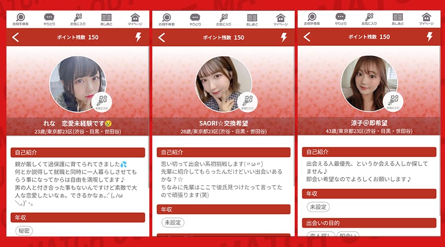 ここだけ見ると、普通の出会い系とそこまで変わらないように見えるな。
