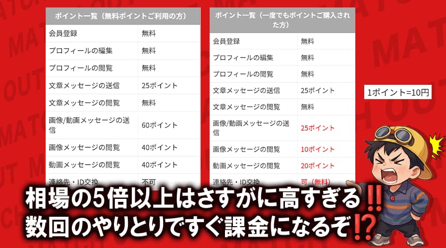 特に、画像や動画の送信・閲覧に高額ポイントが必要な点はかなり注意が必要なところだな。