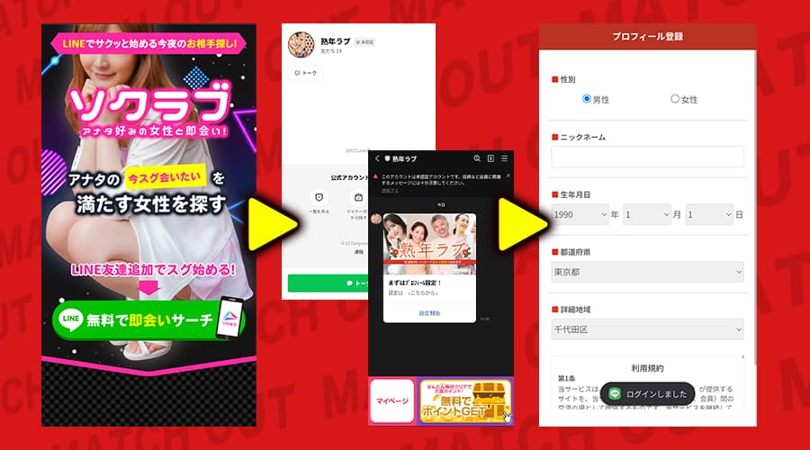 次は、実際に熟年ラブ(ソクラブ)へ登録し、内部の様子やメッセージ内容を検証していくな。