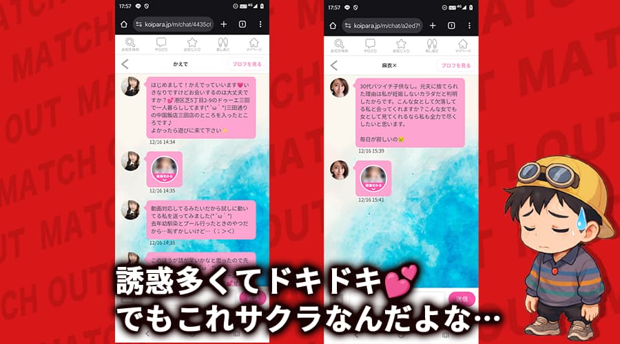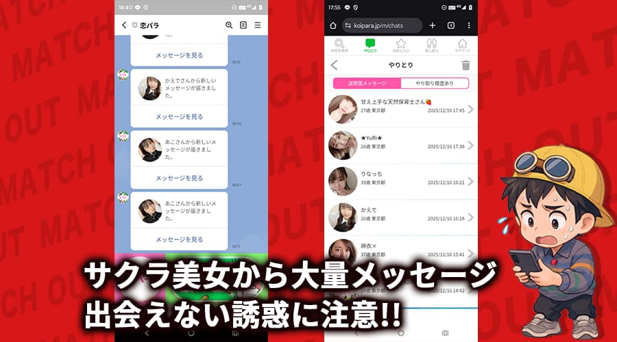 俺自身の体験と口コミを合わせて考えると、恋パラはサクラや自動対応を疑う声が多く、慎重に判断すべきサービスだと感じた。
