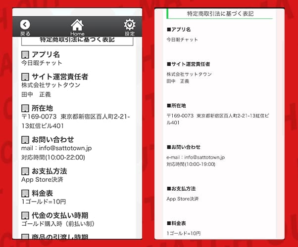 しかし、今日ヒマ!?(今日暇チャット)には、この届け出番号の記載が確認できなかった。