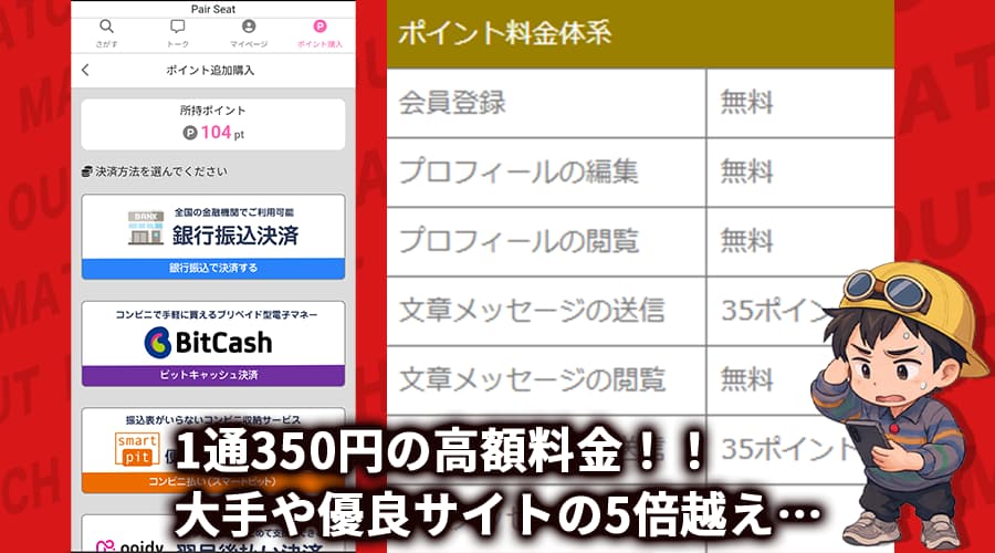 - 1通350円の高額課金に対して、実際の出会いに繋がらない
