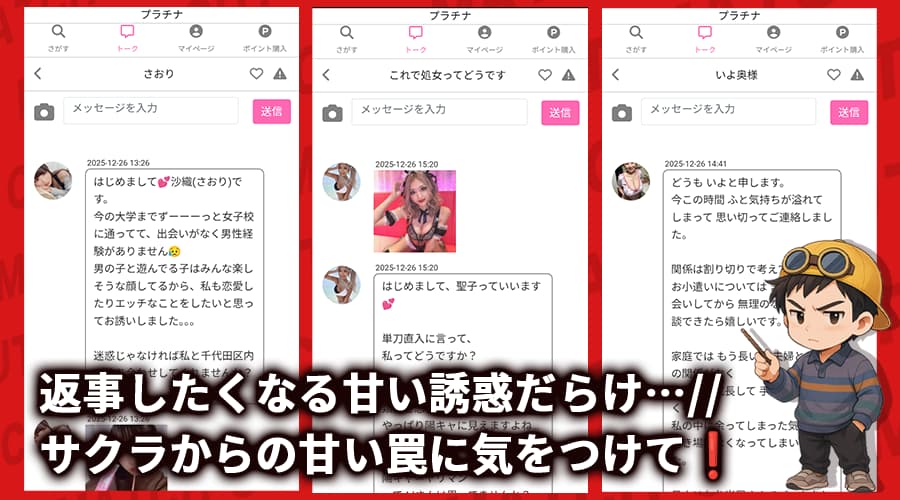 ここから先では、「プラチナ」のサービス内容や実際のやり取り、サクラ疑惑、出会えない理由を、さらに深掘りしていくぞ。