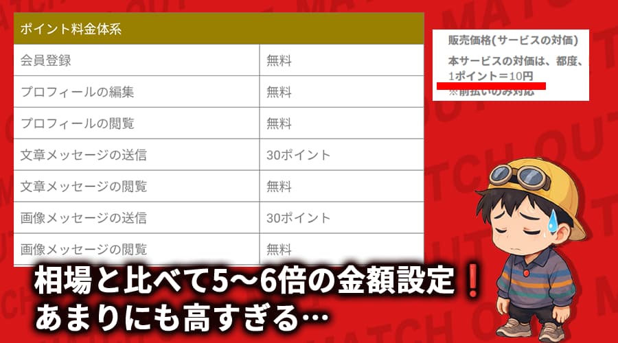 - メッセージ1通300円と高額で、会えないまま課金が続くリスクが高い
