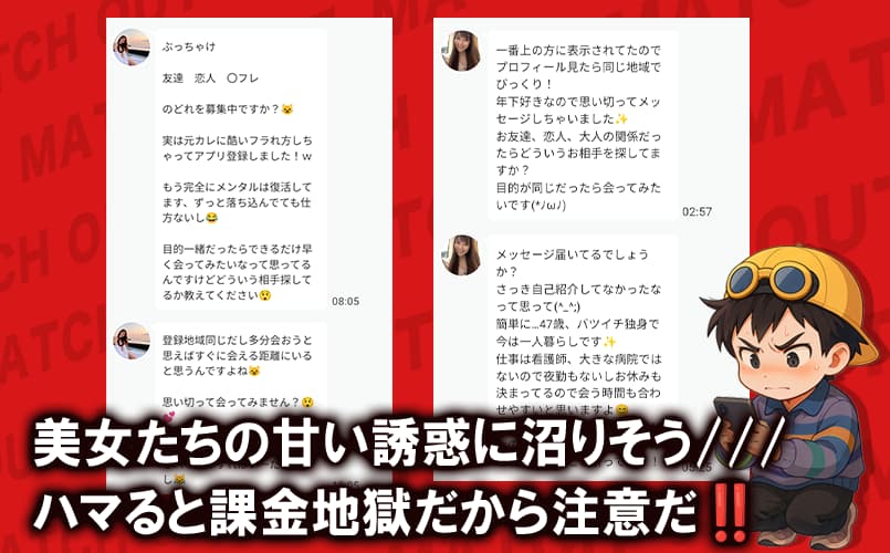 - 登録直後からサクラ疑惑のメッセージが大量発生