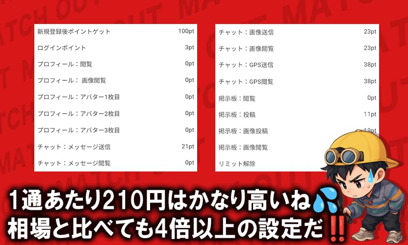 メッセージ1通で約210円、画像を見るだけでも同額かかる計算になるな。