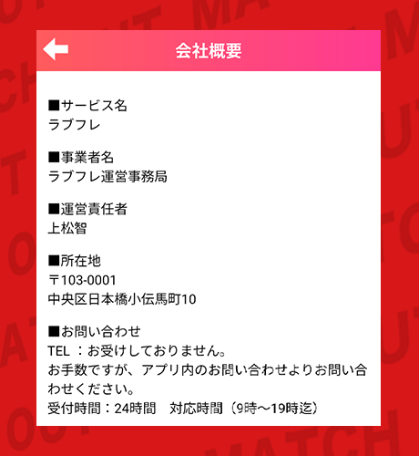 | 運営情報 | ラブフレ運営事務局 |