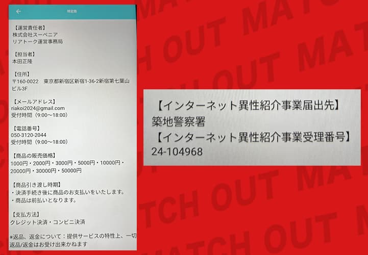 | インターネット異性紹介事業の届出 | あり(24-104968) |