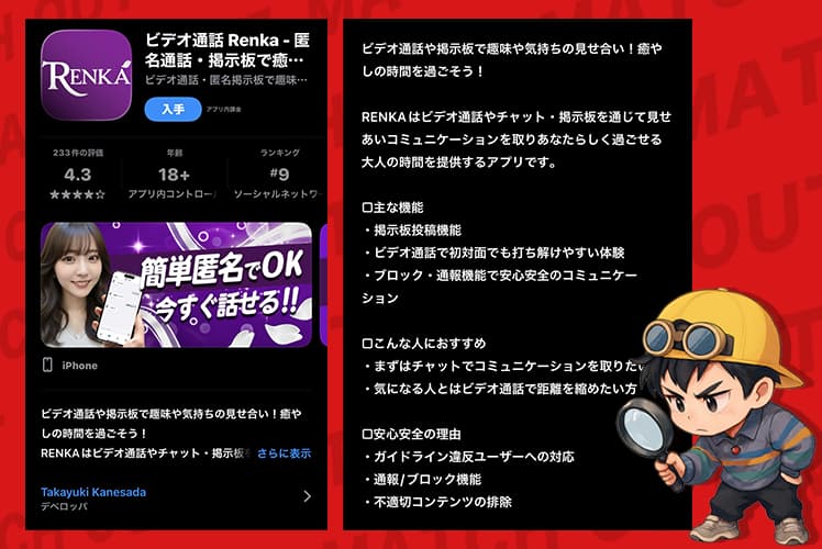 だからこそ今回は、俺が実際にRenka(レンカ)を入れて、登録から中身までガチで確認してきたぞ❗️