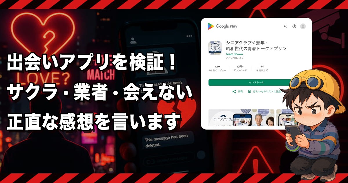 今回は「シニアクラブ」っていう出会い系アプリについて、ガチで調査していくぞ。