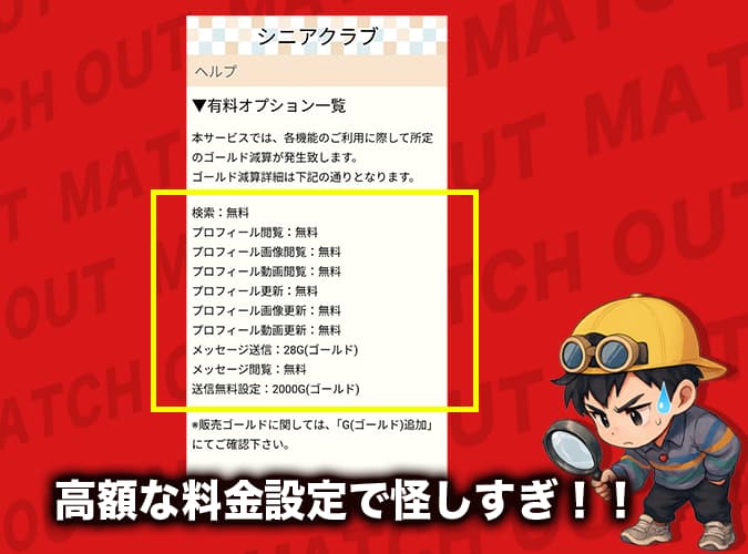 - メッセージ送信が1通28Gで高額で、会えないまま課金が膨らむリスクがある