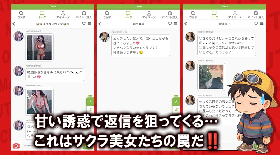 - 登録直後にサクラを疑う美女から大量にメッセージが届く