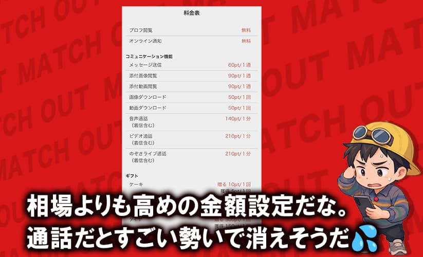 料金自体が違法というわけではないけど、出会い目的で使うにはコスパが悪く、かなりリスクのある設定だと感じたぞ。
