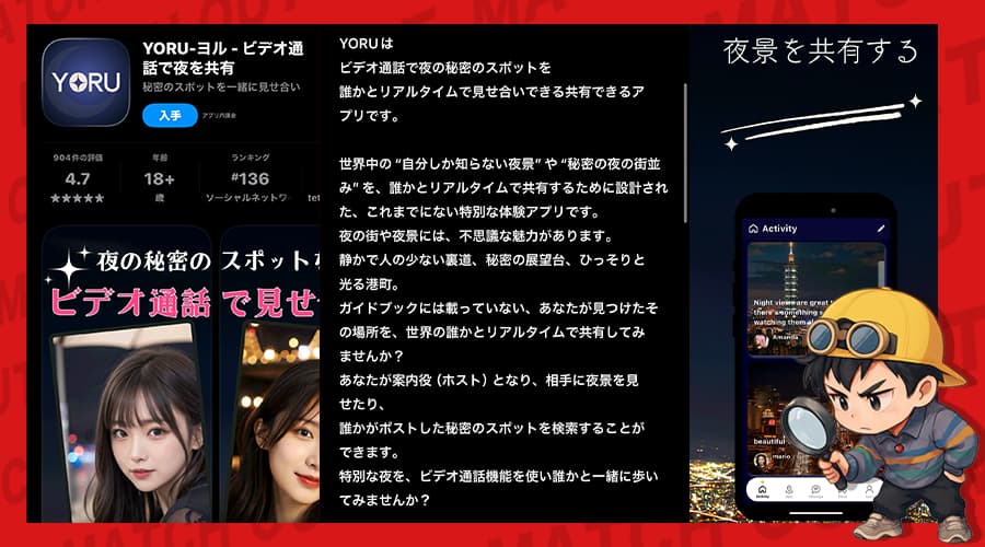 まず、YORU(ヨル)のビデオ通話アプリがどんなサービスなのか、紹介ページに書かれている内容を整理してみるぞ。