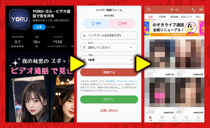 じゃあここから、俺が実際にYORU(ヨル)のビデオ通話アプリを登録して使ってみた流れを、そのまま書いていくぞ。