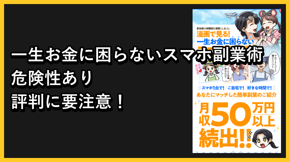 この「一生お金に困らないスマホ副業術」は、一見魅力的な案件ですが、正直に言うとおすすめできないと感じています。