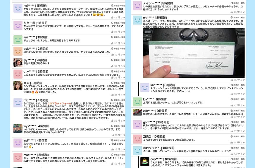 詐欺サイトに掲載されている口コミや体験談は、ほぼ全てが捏造されたものです。